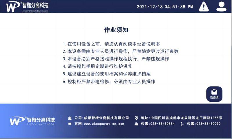 - 所有设备的操作及维护必须由专职人员进行操作;